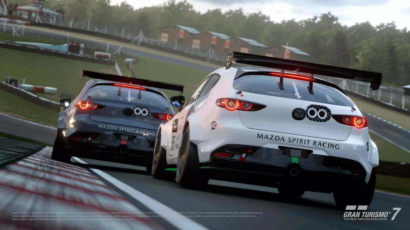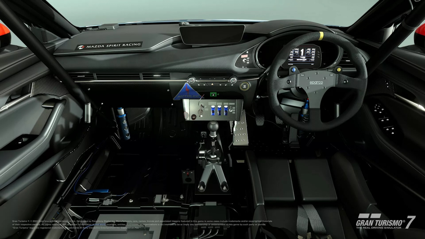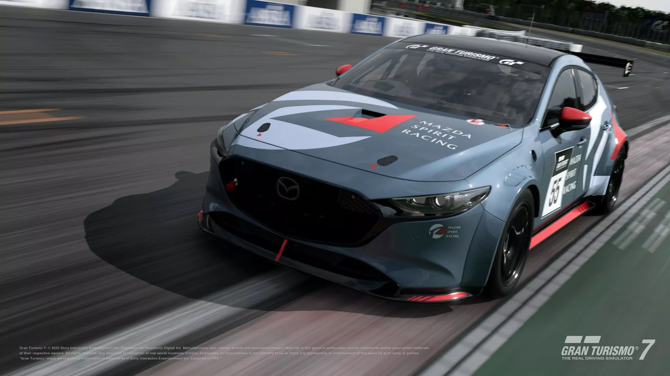 Por fim, o Mazda 3 da competição GR.4 também foi adicionado. Ele se diferencia da versão de rua por conta dos para-lamas alargados, saias vermelhas nos quatro contados do carro, além de um aerofólio traseiro bem chamativo.