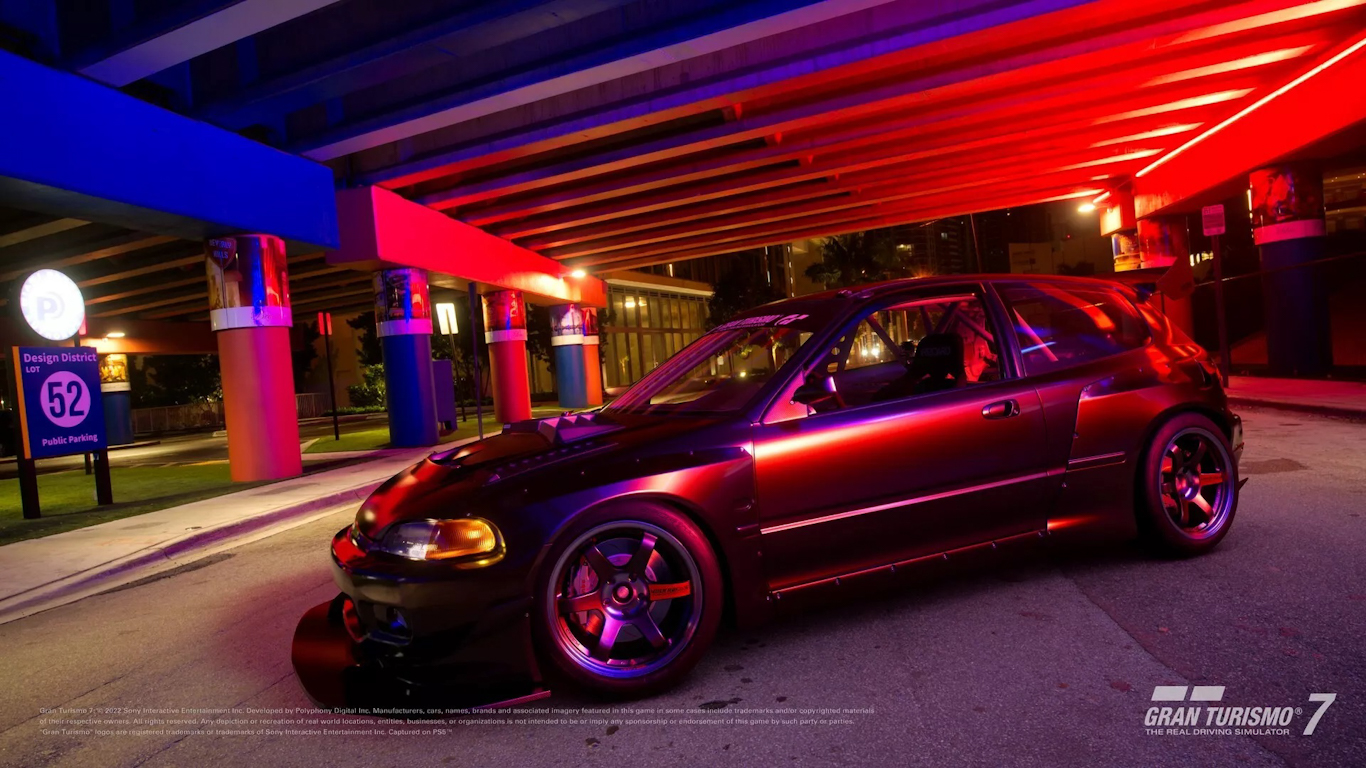 Outra adição especial é o Honda Civic EX 1992. O modelo customizado foi feito pela Garage RCR e foi vencedor do Gran Turismo Award feito no SEMA de 2017. Ele tem motor 2.0 aspirado, mas diversas modificações mecânicas e visuais, incluindo para-lamas generosamente alargados.