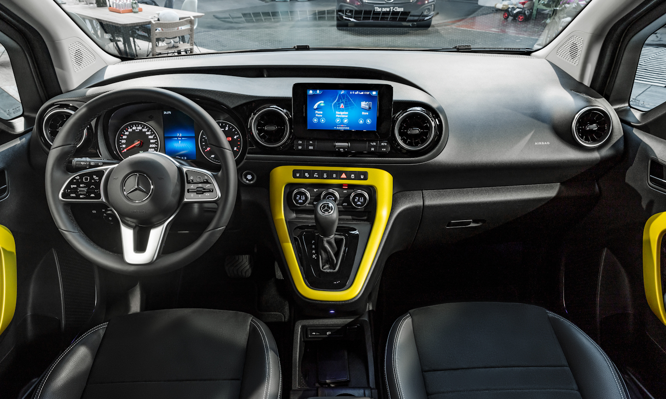 O que veio da marca francesa, no entanto, foi o sistema de ar-condicionado. Os botões são os do Duster, mas com opção dual-zone ausente no SUV compacto vendido no Brasil. Com pegada jovial, a Mercedes oferece ao Classe T opção de peças internas na cor da carroceria.