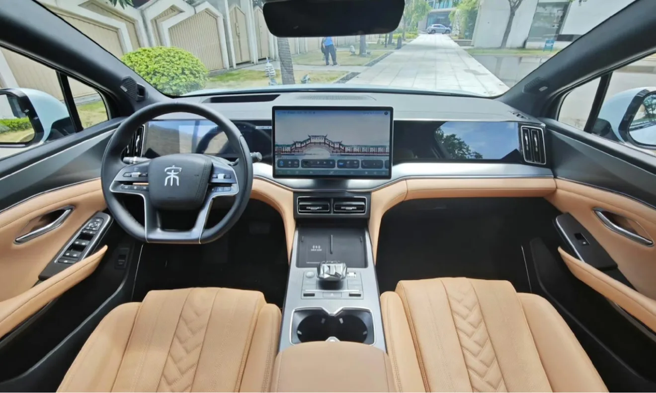 Já a cabine terá como única opção de revestimento o couro bege, chamado pela BYD de Golden Sand Ceramic. Vale ressaltar que essas opções de cores claras no interior são padrão da marca, visto que o Song Plus tem revestimento bege claro com azul e laranja, enquanto o Song Pro abre mão só do azul, o trocando por preto.