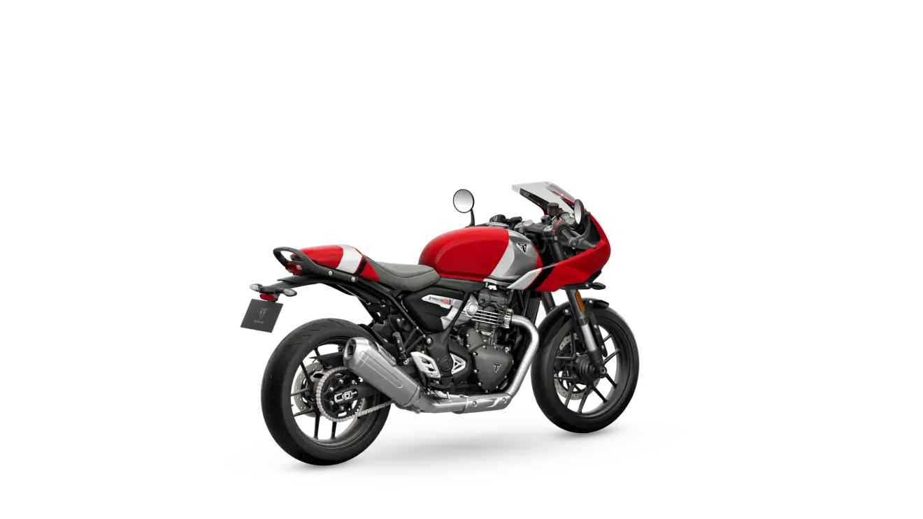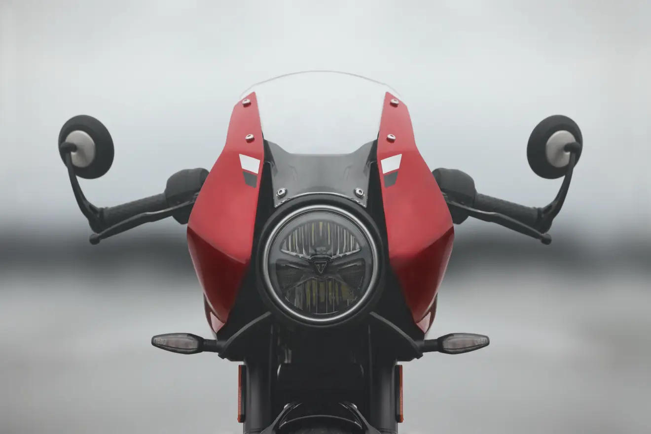 Visualmente, a Thruxton 400 aposta em carenagem frontal compacta, tanque esculpido com o tradicional emblema triangular da Triumph, rabeta minimalista e escapamento esportivo elevado. O conjunto equilibra tradição e modernidade, mantendo viva a herança racer sem abrir mão de acabamento refinado e soluções contemporâneas, como iluminação full LED e painel analógico-digital.