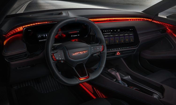 Ele terá também uma transmissão automática eRupt com várias marchas diferentes, produzindo a sensação clássica de um muscle-car. Carros elétricos como Audi RS e-tron GT e Porsche Taycan contam com um câmbio de duas marchas em que é sentida a troca. A Dodge promete ir além e trazer a sensação do carro a combustão ao elétrico.