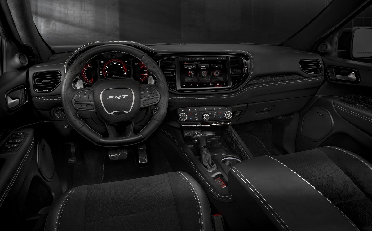 Além do motorzão (aliado ao câmbio automático de oito marchas), tem mudanças estéticas nesse Durango. São novas as tomadas de ar, enquanto os dutos do radiador de óleo, guia de ar e snorkel para indução de ar frio foram redesenhados. Por dentro, a central multimídia está maior (10,1″) e cinco vezes mais rápida. No mais, há recursos extras no veículo, como modos de direção e suspensão.