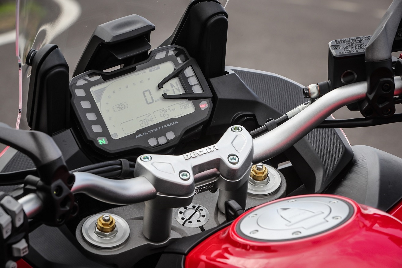 Na ciclística, a Multistrada 950 traz suspensões com 170 milímetros de curso, roda de 19 polegadas na dianteira e banco com altura de 840 mm em relação ao solo (que garante maior conforto e visibilidade). Debaixo dele, há uma entrada USB que permite o carregamento de smartphones e outros dispositivos eletrônicos.