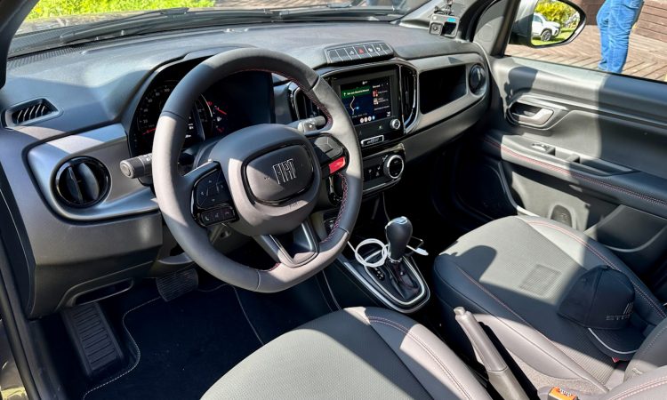 Ao dirigir, é nítido que o volante está um pouco mais duro e firme, melhorando do comportamento molenga típico de muitos modelos brasileiros da Stellantis. Como resultado, a Fiat Strada segue um carro verdadeiramente gostoso de dirigir e robusta para o trabalho.