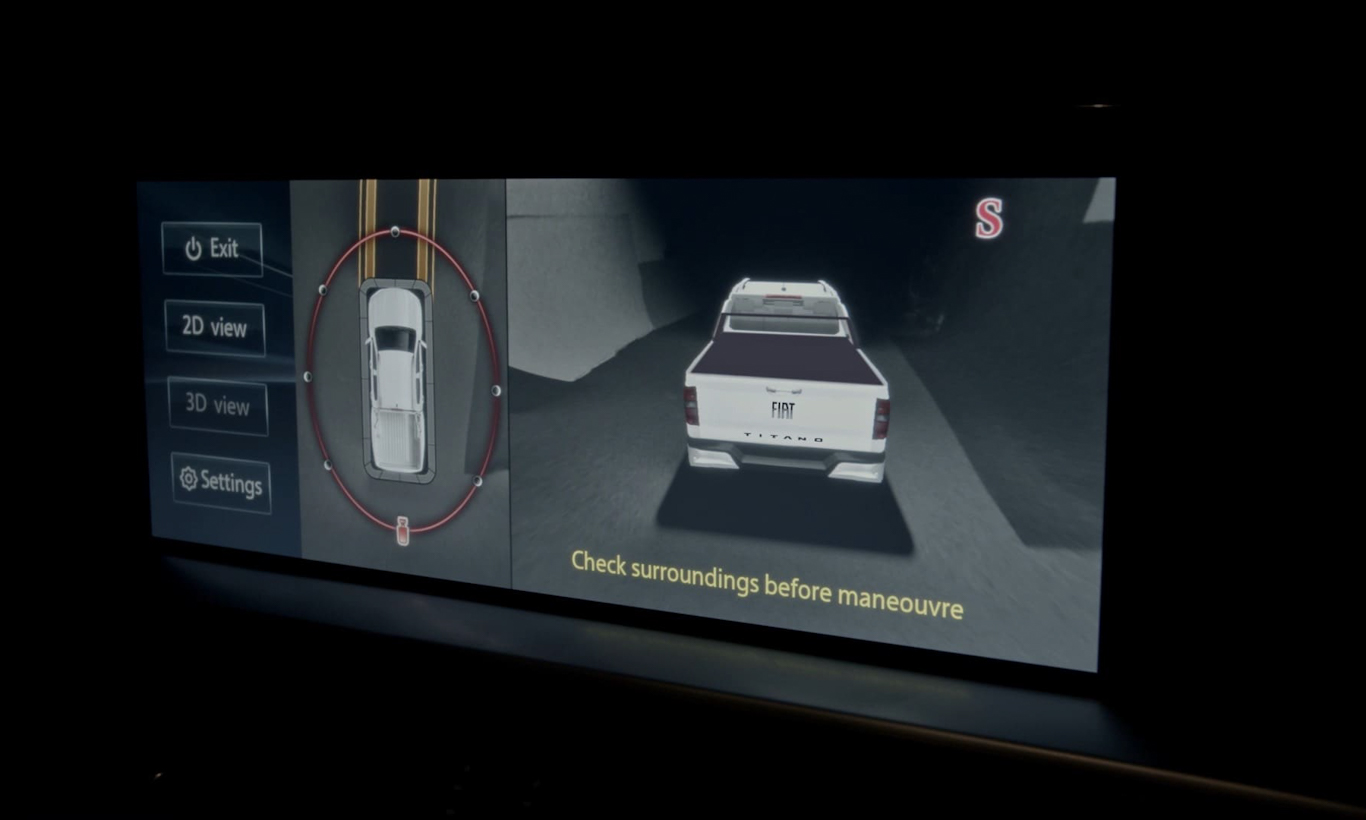 No teaser, é possível ver que a Fiat Titano terá sistema de câmeras 360°, tirando a exclusividade desse equipamento da Nissan Frontier e da Ford Ranger. Só que o curioso é que a central multimídia parece ainda estar em inglês, enquanto o painel de instrumentos é apresentado já na língua portuguesa. Algo que pode ser apenas por conta do teaser.