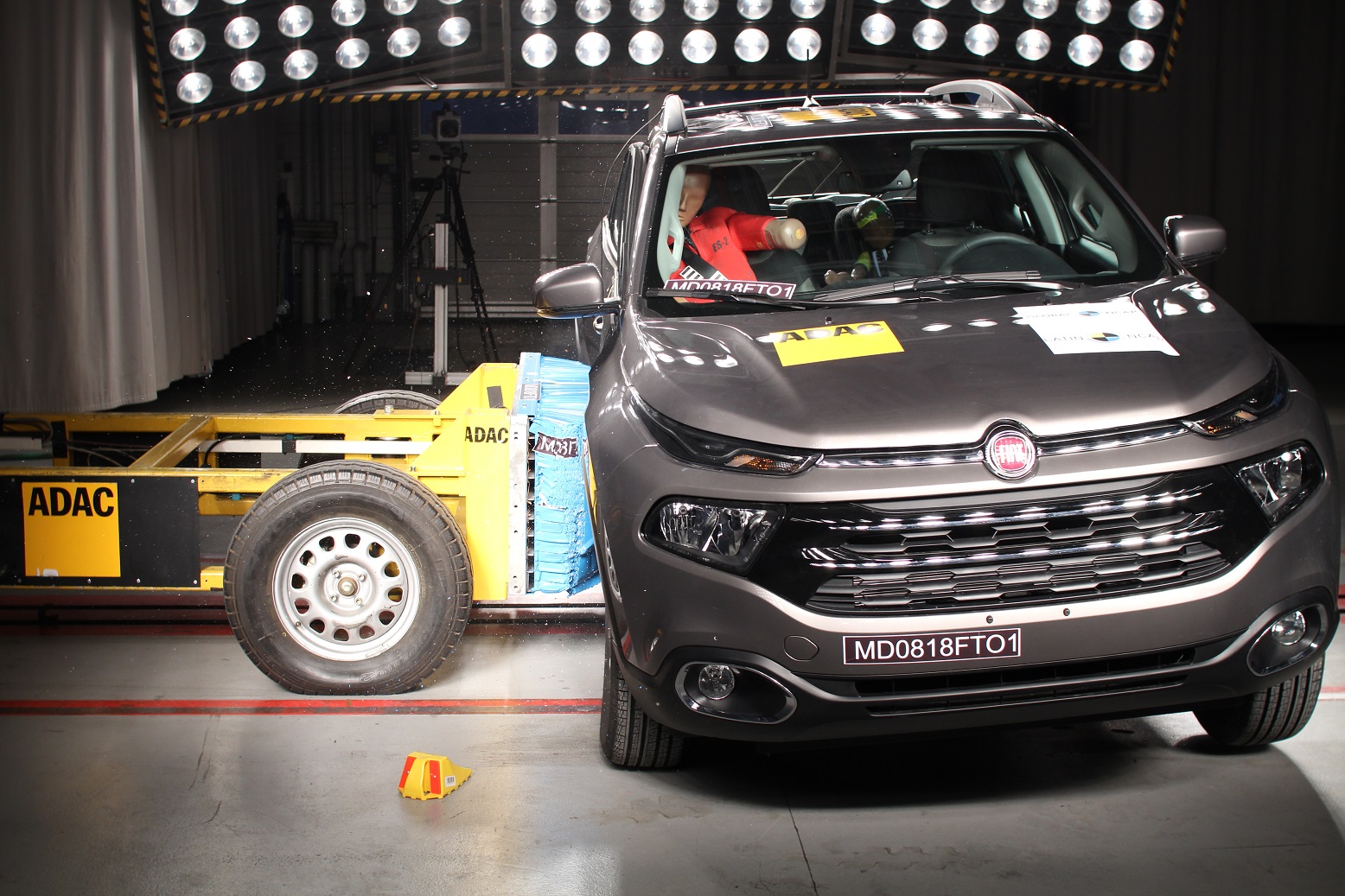 Lançada em 2016, a Fiat Toro é testada pela primeira vez para ter sua segurança avaliada pelo Latin NCap — e a estreante foi bem. De acordo com o órgão, no teste de impacto frontal a Toro apresentou uma estrutura estável e ofereceu boa proteção para a cabeça dos adultos e proteção adequada para o peito.