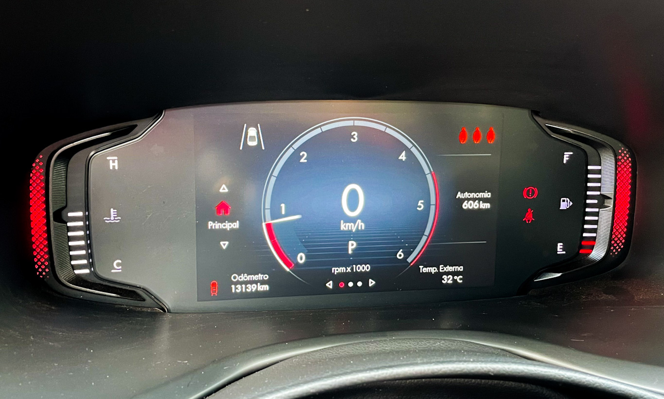 Já o painel de instrumentos totalmente digital apresenta um certo atraso na exibição das rotações do motor. Mas a tela tem boa definição e não fica ofuscada pelo sol. Auxilia nessa operação a presença de uma película fosca que evita reflexos a todo custo. Vale destacar também a grande presença de porta-objetos na cabine, incluindo um debaixo do banco.