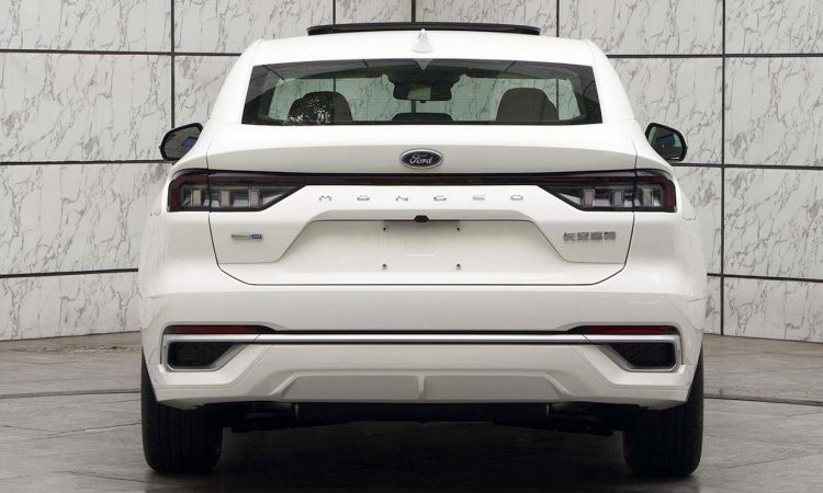 Inspirado no Mustang, o novo Fusion / Mondeo tem lanternas traseiras retangulares com três filetes verticais. Elas são conectadas por um friso luminoso que divide a área onde fica o logo da Ford e o nome Mondeo (que pode virar Fusion caso ele vá para as Américas). O para-choque tem falso extrator de ar somente no ST Line.