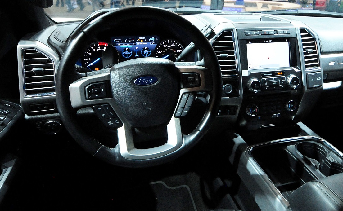 A F-450 SuperDuty chama a atenção tanto pelo porte quanto pelo enorme motor: um V8 turbodiesel de 6,7 litros, que desenvolve 440 cv e incríveis 128 kgfm de torque — suficientes para levar 3.460 kg de carga e rebocar até 14.741 kg (como trailers e barcos). Segundo a Ford, o chassi é composto por mais de 95% de aço de alta resistência, enquanto a carroceria conta com liga de alumínio de nível militar.