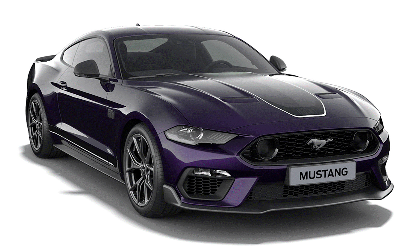 Vendido unicamente na versão Mach 1 de R$ 533.180, o Ford Mustang agora passa a contar com as cores Verde Fuji, Laranja Delhi, Cinza Catalunha, Azul Estoril e Roxo Zolder. Nas cores roxo, verde, laranja e azul as faixas são pretas com destaque em branco. Já no cinza, as faixas tem destaque em vermelho, mas seguem pretas.