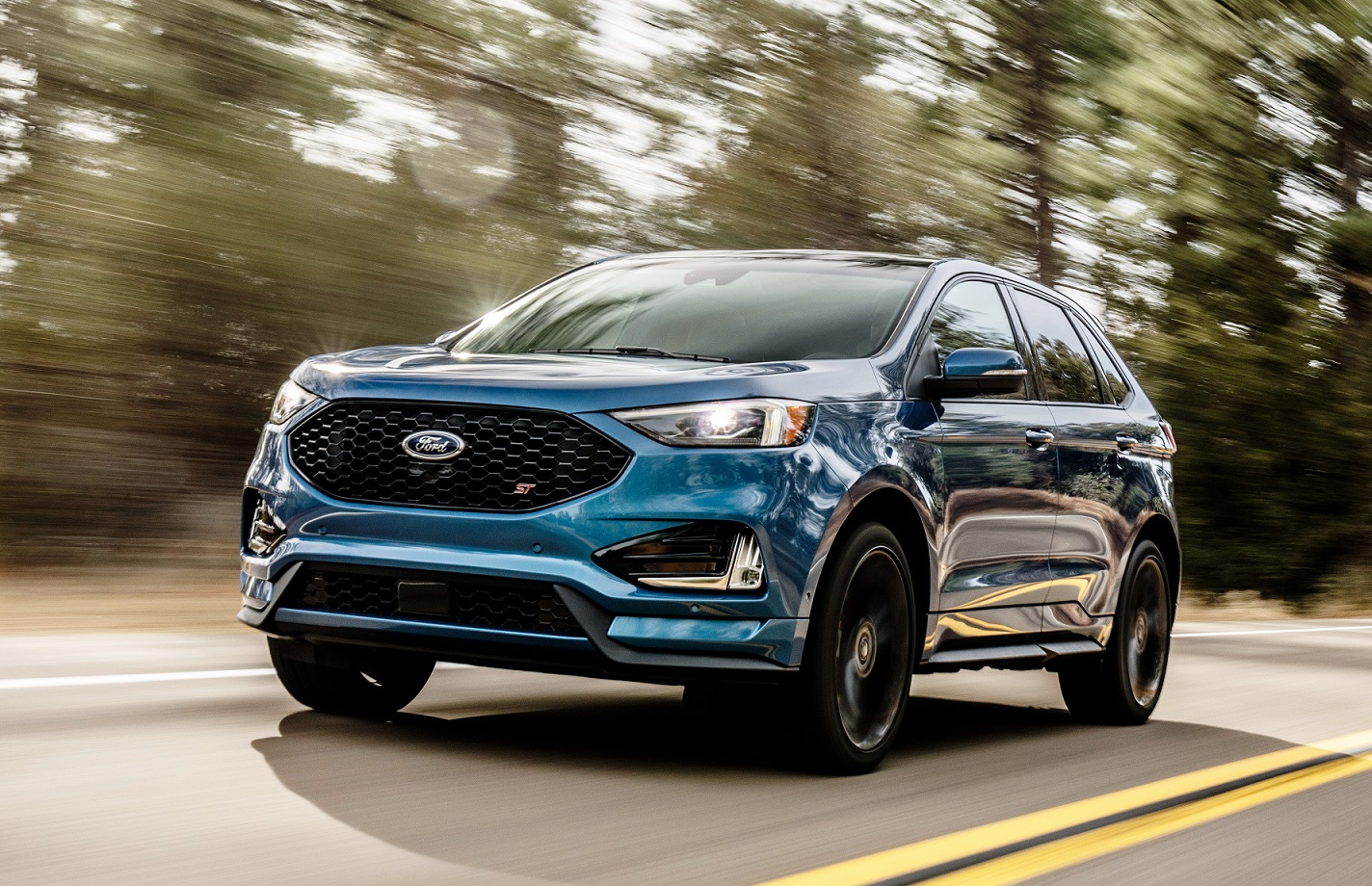 Visualmente, a receita do Edge ST ficou interessante. Na dianteira o destaque é a grade em colmeia para melhorar o arrefecimento do motor, trazendo anda saias laterais mais largas, saída de escapamento dupla e rodas de 21 polegadas com desenho exclusivo. A cabine tem console central redesenhado e um novo botão de câmbio rotativo. Na lista de itens, o crossover traz sistema de frenagem pós-colisão, assistente de manobras evasivas, controlador de velocidade adaptativo, sistema de estacionamento semiautônomo, entre outros.