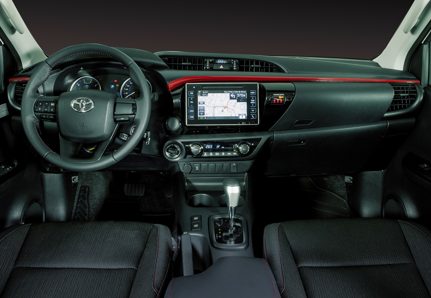 Por dentro, a picape traz costuras vermelhas nos bancos e volante, além de detalhe de acabamento vermelho que atravessa o painel. Entre os itens de série, há volante multifuncional, central multimídia com tela de 7 polegadas com DVD, entrada auxiliar de vídeo, câmera de ré e som com seis alto-falantes. O motor é o 2.8 turbodiesel de 177 cv e 45,9 kgfm de torque, com câmbio automático de seis marchas e tração 4×4.