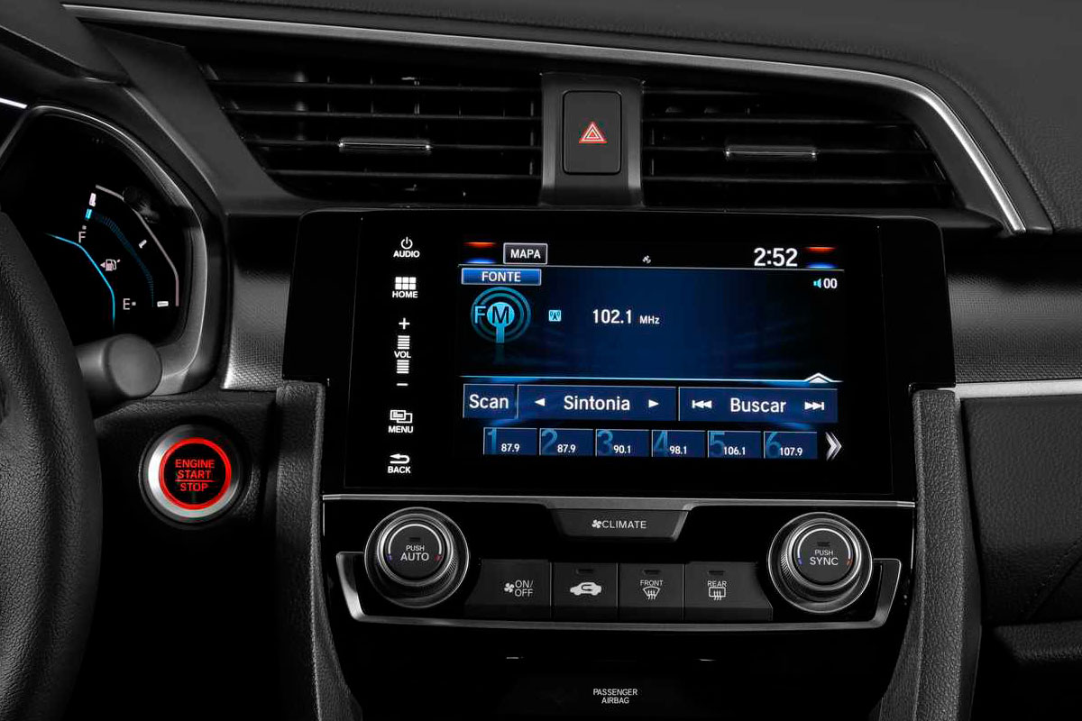 Em comum, todas as versões contam com sistema de monitoramento de pressão dos pneus e, a partir da versão Sport, o Civic ganha acendimento automático dos faróis e central multimídia de 7 polegadas com espelhamento para Android Auto e Apple CarPlay.