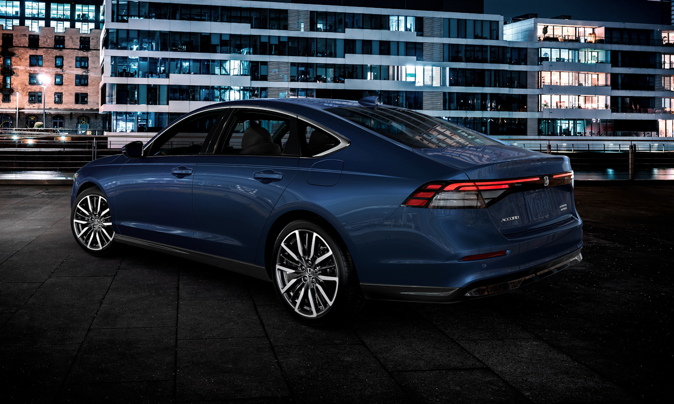 O capô traz duas linhas mais vincadas, que partem da grade. Nas laterais, o desenho do Accord se destaca por um friso que nasce no para-lama dianteiro e define a linha de cintura do sedã. As janelas possuem um contorno cromado, que dá uma elegância nas suas linhas. De traseira, a nova geração possui lanternas horizontais e que contam com uma barra preta. O espaço para a placa fica logo abaixo.