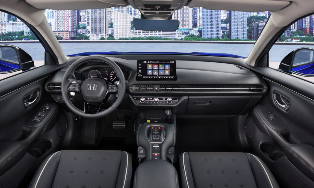 Sendo o verdadeiro SUV do Civic, o Honda ZR-V traz interior com diversas peças compartilhadas com o sedan médio. Por fora, ele tem opção de grade frontal com filetes verticais ou estilo colmeia. Faróis e lanternas do modelo europeu são um pouco diferentes das usadas no modelo americano, assim como o para-choque traseiro.