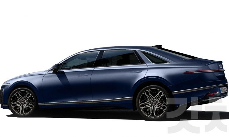Com abertura de ar retangular, o para-choque abrigará também os faróis principais de LED. Será o Hyundai Azera mais ousado da história, que ainda terá tampa do porta-malas quase que na mesma inclinação do vidro, formando um perfil cupê. Maçanetas retráteis também estarão presentes.