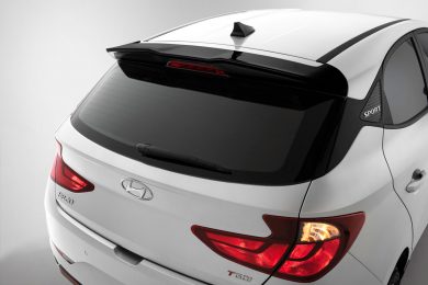 Além do conjunto mecânico turbo compartilhado com as versões topo do HB20, o hatch ainda ganha novas rodas de liga-leve, friso no para-choque – que pode vir na cor vermelha ou prata, além de saias laterais e um aerofólio. A coluna “C” recebe um adesivo alusivo a versão e o miolo das rodas ganham um tom de vermelho.