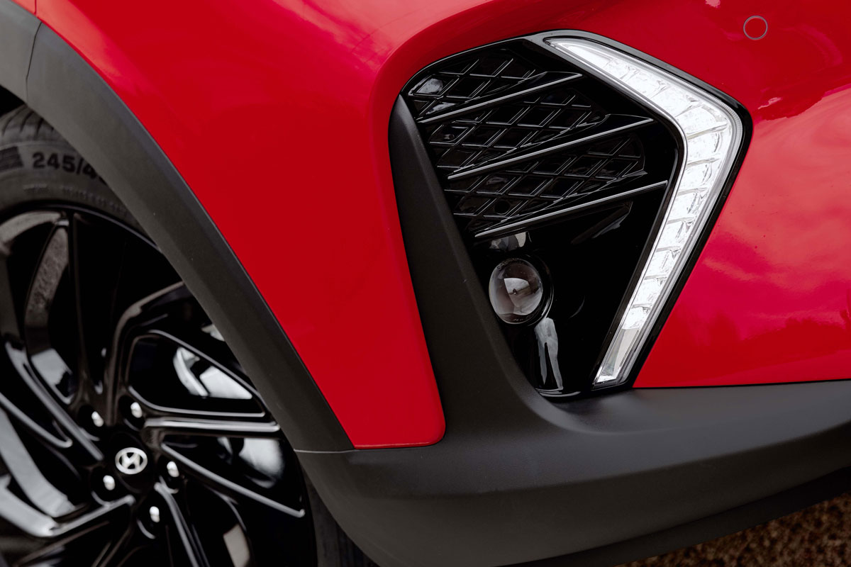 À primeira vista, o que chama mais atenção no visual do Hyundai Tucson N Line é a grade dianteira com acabamento em preto brilhante, além do novo para choque que ganha novas entradas de ar e luzes de LED, deixando o desenho mais agressivo.