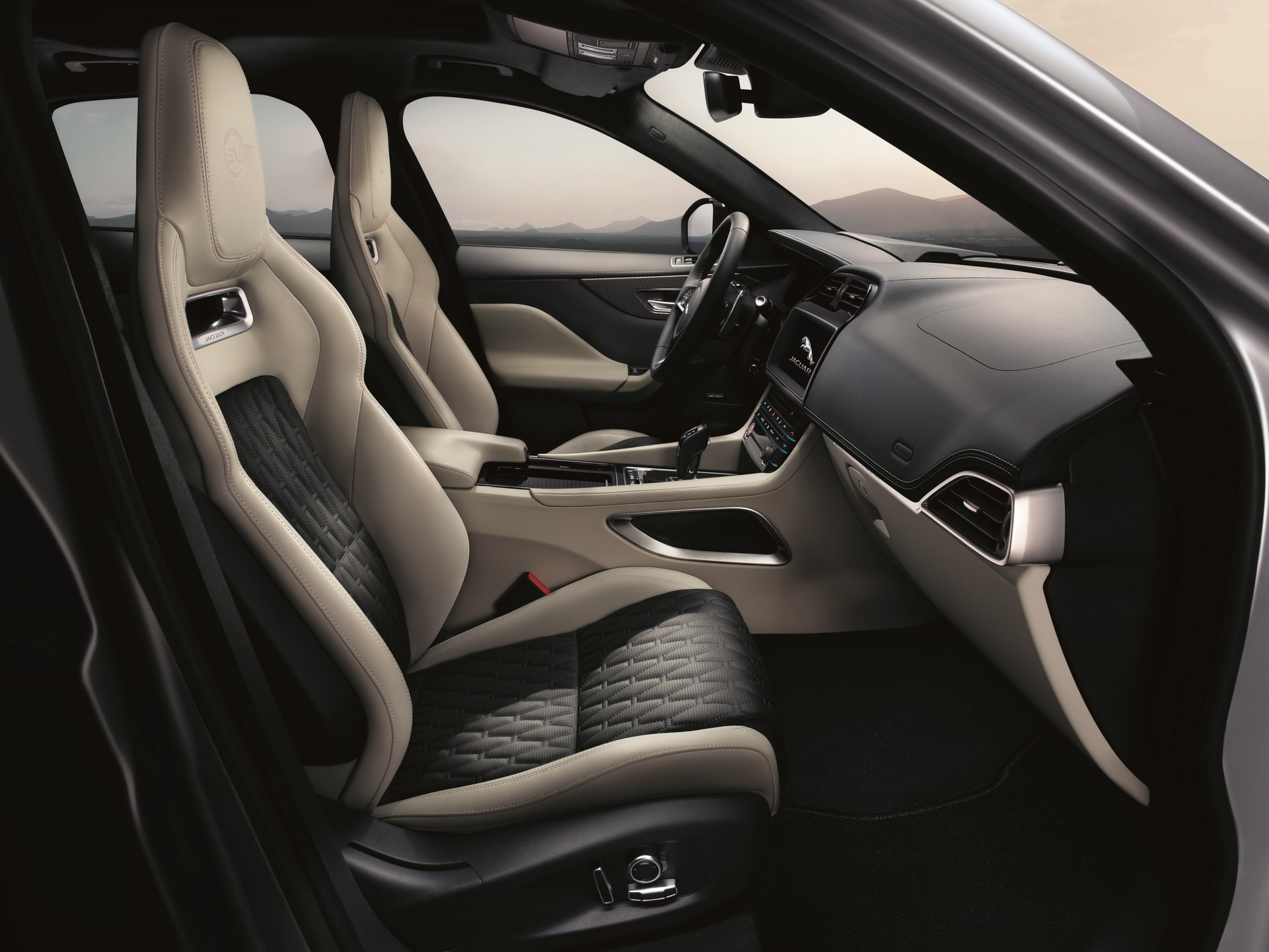 Visualmente, o F-Pace SVR traz desenho mais agressivo por conta do para-choque dianteiro com entradas de ar maiores, capô com saídas de ar, saídas de ar laterais, molduras nos para-lamas, spoiler e para-choque traseiro com difusor de ar para aumentar a estabilidade em altas velocidades — e “grudar” o SUV na pista. Já a cabine mantém a sobriedade da versão “comum”, exceto pelos bancos esportivos do tipo concha com o logotipo SVR em relevo.