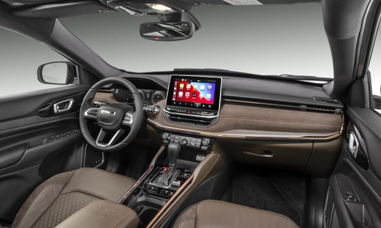 No interior, ele busca a aproximação com o novo Compass. Os painéis de ambos são similares e o Commander oferece central multimídia com tela de 10,1 polegadas, flutuante e com sistema Uconnect, com conectividade com Android Auto e Apple CarPlay sem fio. A tela ainda passa a ter sistema de comandos por voz com inteligência artificial e o SUV tem quadro de instrumentos com tela digital LCD, de 10,25 polegadas.
