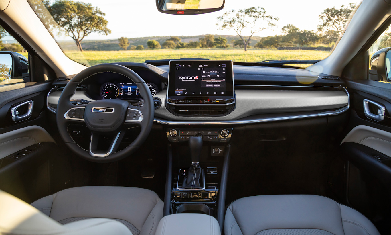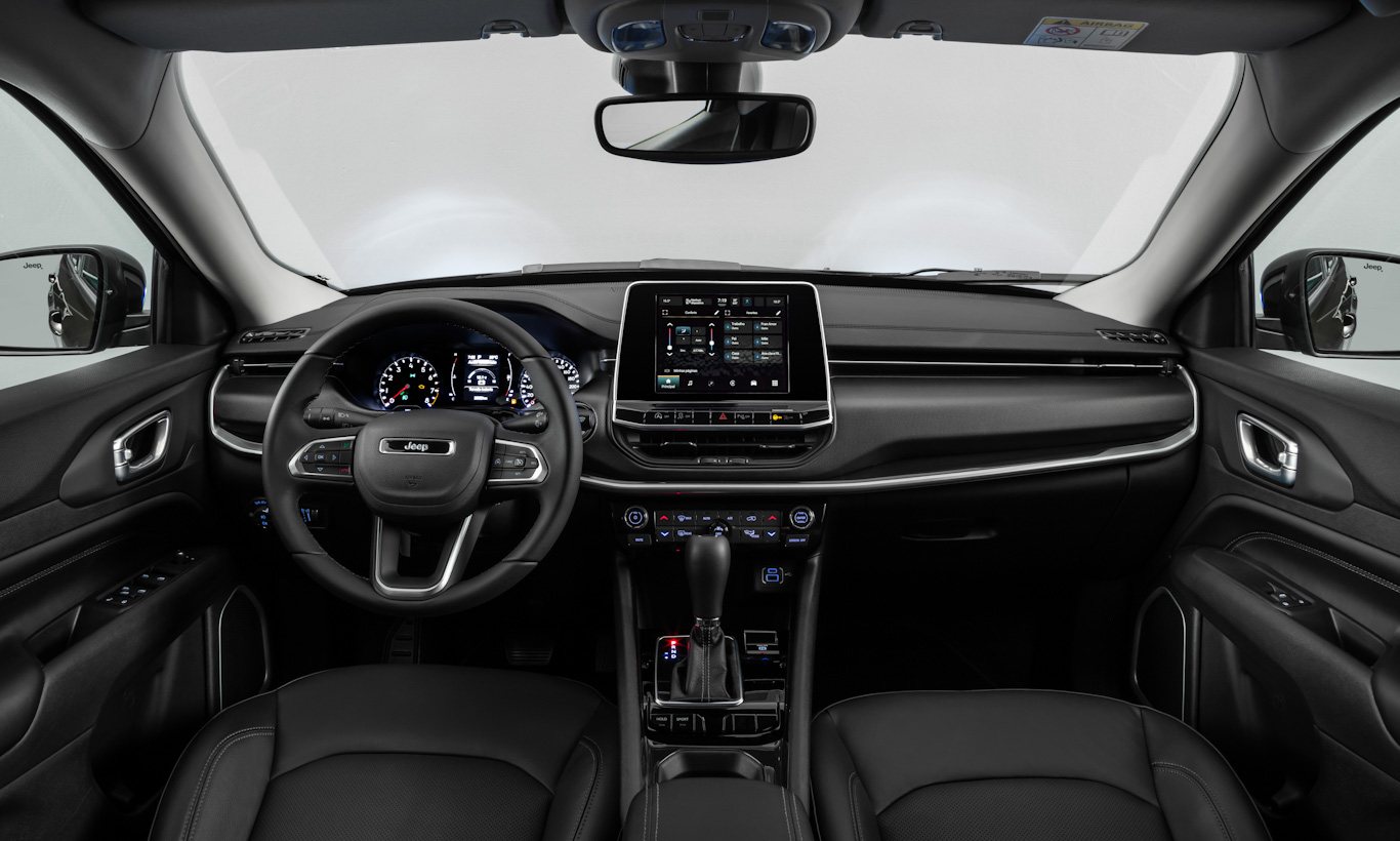 Na versão Longitude, o Compass 2022 ganha central multimídia de 10,1 polegadas com Adventure Intelligence, retrovisores elétricos, bancos revestidos em couro preto, troca de marcha no volante, rodas de liga-leve de 18 polegadas, painel de instrumentos com tela de 7 polegadas, retrovisor eletrocrômico e GPS.