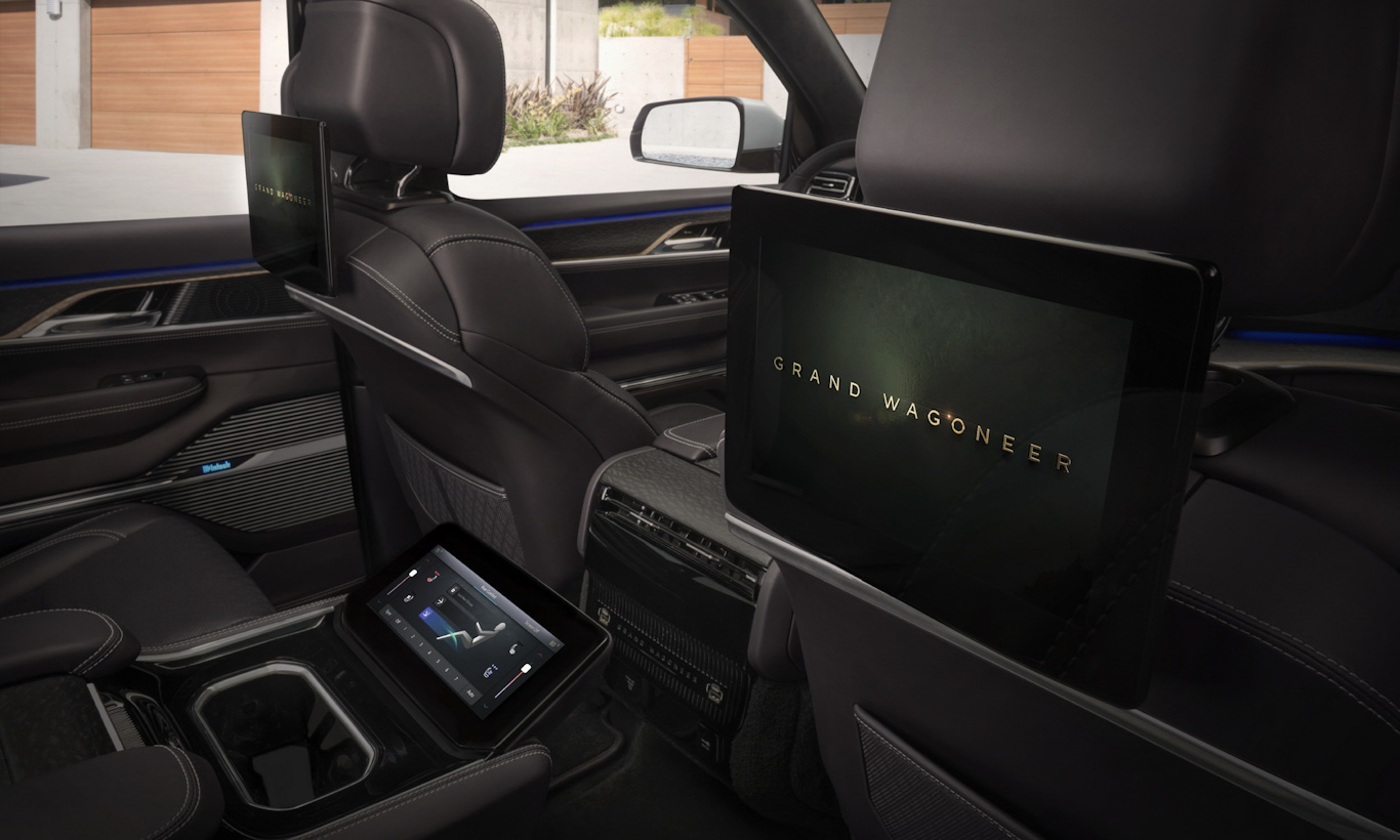A Jeep ainda instalou uma tela à frente do passageiro e mais duas na parte traseira para controle e entretenimento dos passageiros da segunda fileira. Por fim, a última tela fica entre os bancos da segunda fileira para controle de ar-condicionado e de demais ajustes.