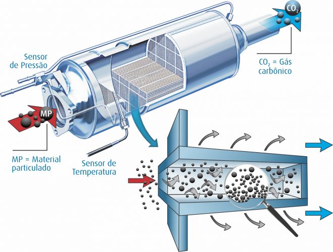 Isso se deve à conversão do material particulado retido no filtro em CO2 e água. A ação é possível graças à função catalítica do equipamento, que promove reações purificadoras dos gases de exaustão.