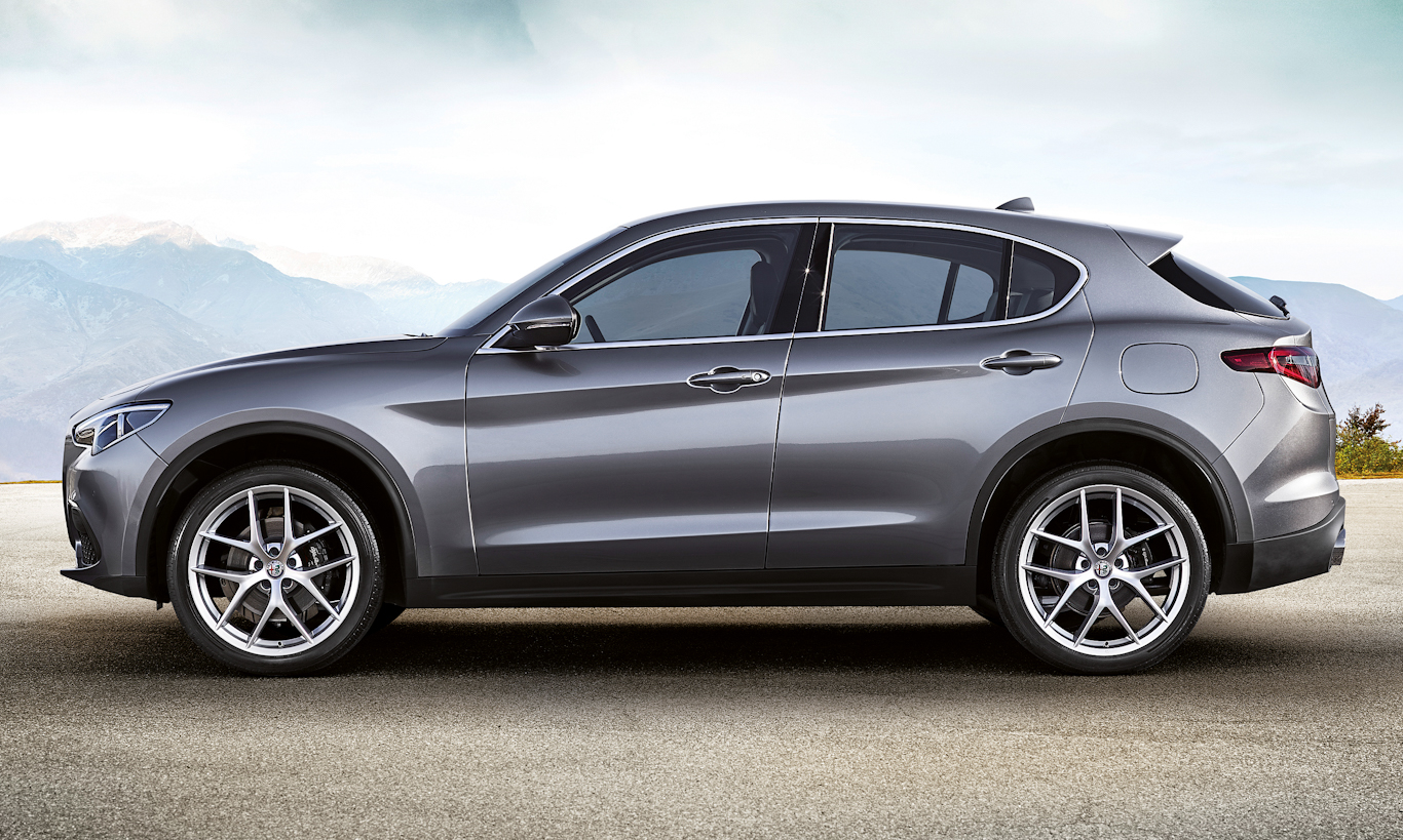 Na lateral, o perfil é quase idêntico ao do Alfa Romeo Stelvio. Não que os SUVs consigam fugir muito da mesma fórmula e por compartilharem base, era esperado alguma semelhança entre eles. Mas o desenho das janelas é parecido demais e o ombro forte na traseira também deixa o Grecale com uma forte vibe Alfa Romeo.