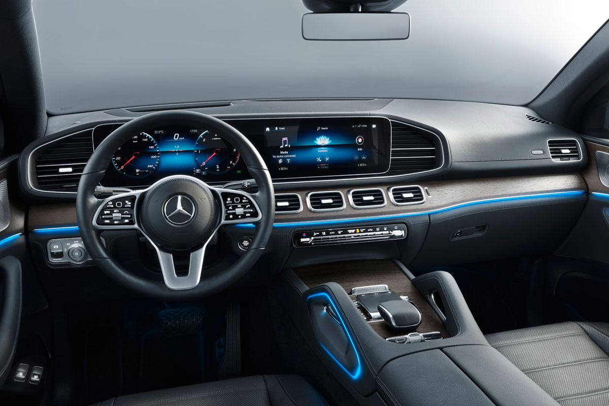 A traseira do SUV agora conta com novas lanternas que perderam o friso cromado que ficava acima delas, deixando o desenho mais limpo e agradável. O interior segue o mesmo padrão do GLE normal, com destaque para as duas telas de 12,3 polegadas – sendo uma para o quadro de instrumentos e outro para a central multimídia.
