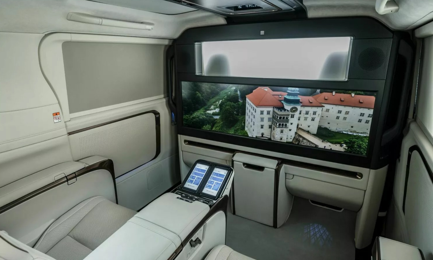 Assim, nas versões de 4 lugares, a LM conta com um monitor de 48 polegadas e mais 23 alto-falantes. Na de 7 lugares, como consolo, há 21 alto-falantes e mais uma tv instalada no teto e de 14 polegadas. Para o motorista e passageiro da frente, há a central multimídia de 14 polegadas, carregador por indução, head-up display de 10 polegadas, espelho retrovisor digital, iluminação ambiente e mais itens.