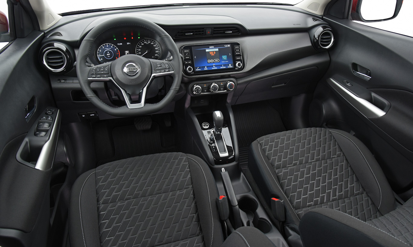 Por dentro, o novo Nissan Kicks 2022 segue o mesmo padrão de acabamento de antes, sendo elogiado também no Versa e o Kicks. A central multimídia é nova com tela de 8 polegadas, Android Auto e Apple CarPlay. Há comandos físicos na lateral que facilitam a vida do motorista.