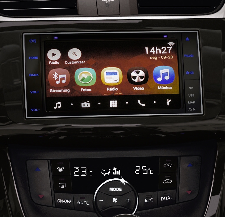 No Sentra 2019, a central multimídia Multi-App traz tela sensível ao toque de 6,2 polegadas, que conta com leitor de DVD, câmera de ré, e HD com 2,2 GB de capacidade de armazenamento para arquivos de música e imagens. Mas o destaque mesmo é possibilidade do motorista baixar diversos aplicativos como Waze, Spotify, Skype, entre outros.