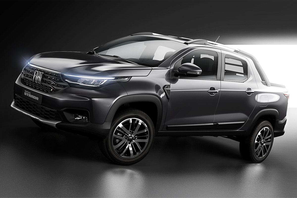 Falando das versões, a Strada mais voltada ao trabalho manterá os para-choques pretos sem pintura como na antiga geração. Características como para-choque mais proeminente e molduras plásticas nos para-lamas equipam toda a gama, enquanto o rack de teto estendido até a caçamba e faróis com luzes de led aparentemente serão exclusivos da versão topo.