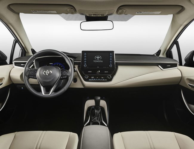 O interior também ganha destaque com seu novo painel que vem da versão hatch e perua, e agora traz um novo sistema multimídia flutuante com 8 polegadas com um novo sistema e compatibilidade apenas com o sistema Apple Car Play – uma vez que a Toyota não tem pretensões de trabalhar com o sistema da Google, o Android Auto. O acabamento agora está mais sofisticado e perde aquela áurea de carro de tiozão.