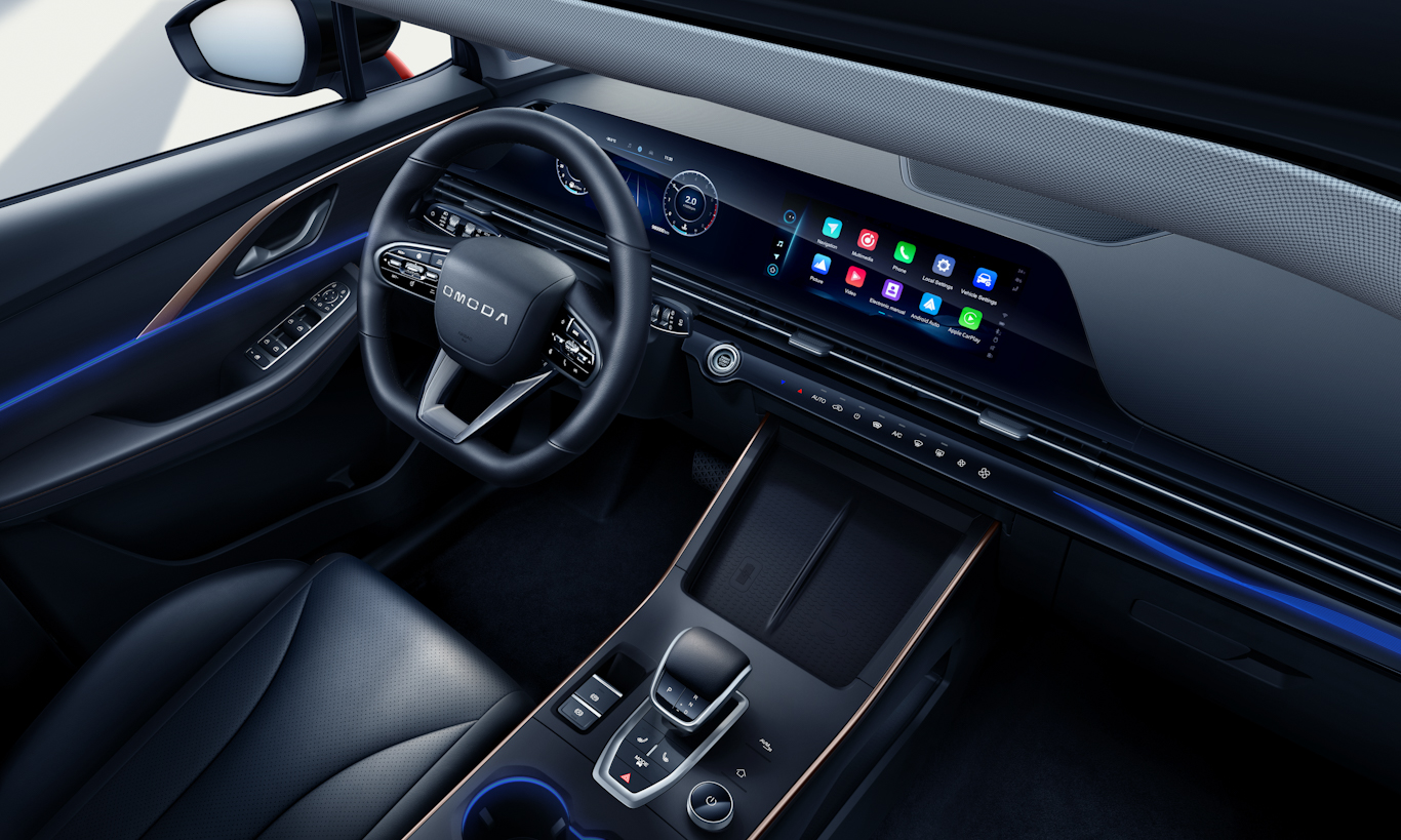 A Omoda já adiantou que o 5 será vendido no Brasil em três versões. Com motor a combustão serão duas variantes de acabamento, enquanto o elétrico será o topo de linha em configuração única. Elementos podem mudar para o Brasil e, a depender do posicionamento do modelo, o interior precisa mudar.