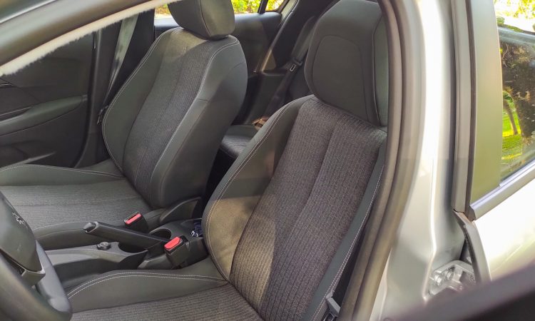 Outra concessão está no painel que, apesar de manter a faixa que imita fibra de carbono, não tem revestimento macio. Os bancos também são mais simples, com tecido de qualidade, mas de visual pouco inspirado. Ao menos as abas laterais são altas e o conforto elogiável. Mesmo em viagens longas, o 208 não cansa.