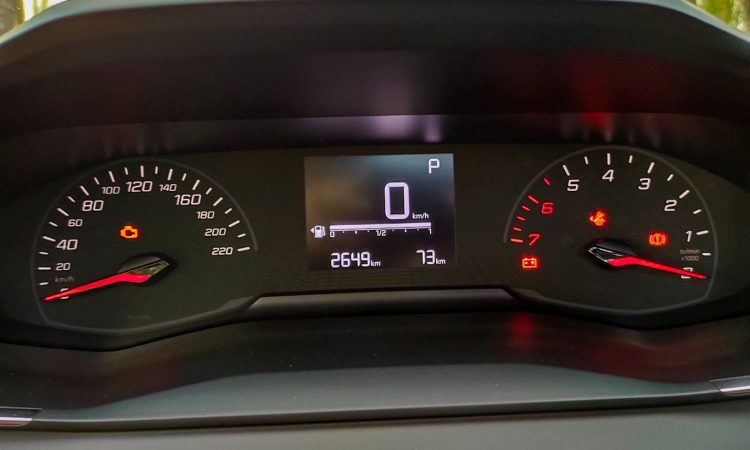 Já o painel de instrumentos tem grafismos simples, apesar de fáceis de ler, além de conta-giros que corre ao contrário (outro típico Peugeot). O computador de bordo tem poucas funções e uma irritante mania de zerar todos os marcadores sempre que você tenta resetar apenas um parâmetro. Saber o consumo em um trecho específico sem zerar o hodômetro parcial é impossível nessa versão – algo que não acontece no Griffe.