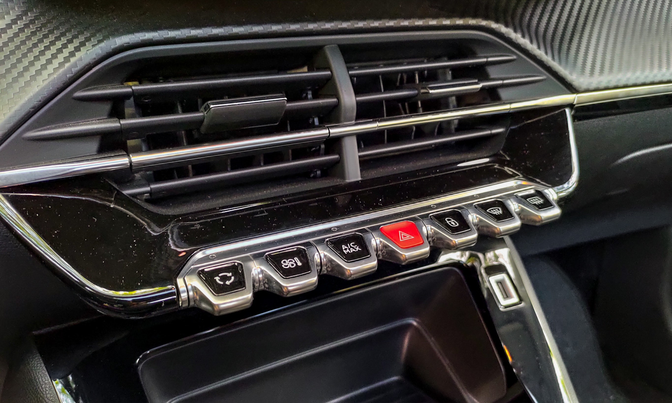 Outra concessão está no painel que, apesar de manter a faixa que imita fibra de carbono, não tem revestimento macio. Os bancos também são mais simples, com tecido de qualidade, mas de visual pouco inspirado. Ao menos as abas laterais são altas e o conforto elogiável. Mesmo em viagens longas, o 208 não cansa.