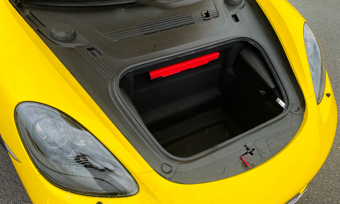 E isso é necessário porque o Cayman é baixinho. São apenas 1,27 m de altura, ou seja, você ficará com seus olhos na altura da maçaneta de muitos carros. Um Mobi parece um SUV ao lado do Porsche. Contudo, seus 4,37 m de comprimento e 1,80 m de largura o colocam no porte de um hatch compacto. Algo ótimo para estradas sinuosas.