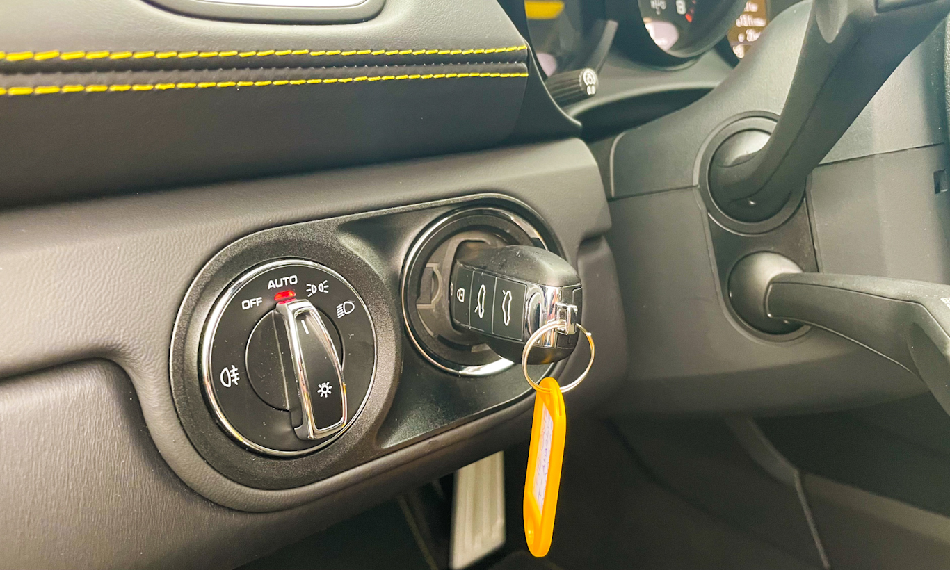 Um item que senti bastante falta no Porsche 718 Cayman T é a chave presencial. Ele conta com uma bela chave em forma de miniatura de Porsche, mas exige que botões nela sejam pressionados para abrir as portas e girada no contato para ligar o carro. Algo que pode parecer mundano, mas para um carro de R$ 479.000 faz falta.