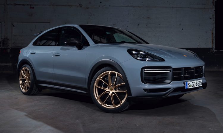 Visualmente ele ganhou para-lamas alargados com plástico preto, aerofólio traseiro novo, teto em fibra de carbono e pintura dourada nas rodas. A saída dupla de escape central é o grande destaque estético do Cayenne Turbo GT. Por dentro há muito revestimento em Alcântara, material encontrado no painel, bancos, volante e até na manopla do câmbio.
