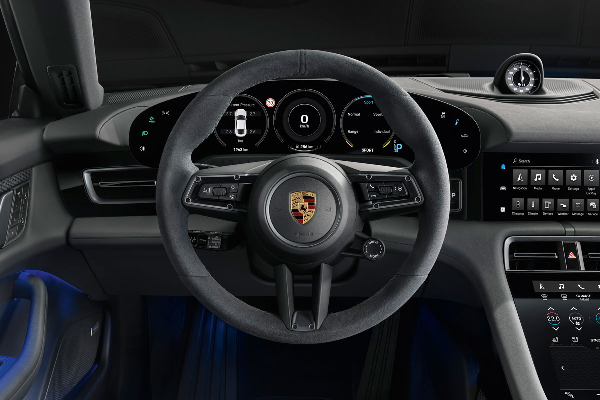 Apesar de ter Turbo no nome, o Taycan Turbo não possui uma turbina em seu motor elétrico. É apenas uma convenção da Porsche que costuma chamar as versões mais caras e potentes de seus modelos dessa maneira. Nessa configuração, o modelo elétrico entrega 680 cv e autonomia de 450 km.