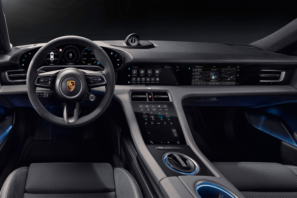 Ele traz todo sistema de iluminação em LED, tanto nos faróis finos quanto nas lanternas traseiras que formam um conjunto luminoso único. Por dentro, o Taycan tem painel de instrumentos totalmente digital acompanhado de mais três telas: uma no console para controlar o ar-condicionado, uma para o passageiro e a tradicional central multimídia.