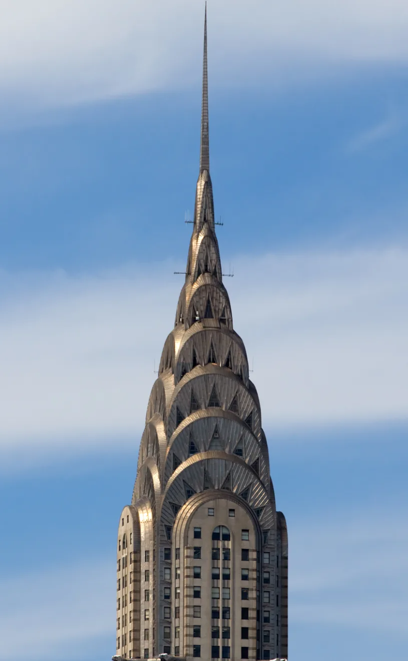 Construído entre 1928 e 1930, o Chrysler Building foi projetado pelo arquiteto William Van Alen no estilo Art Déco e foi originalmente concebido como sede da Chrysler Corporation. Com 77 andares e 319 metros de altura, o Chrysler Building foi o edifício mais alto do mundo até ser superado pelo Empire State Building em 1931.