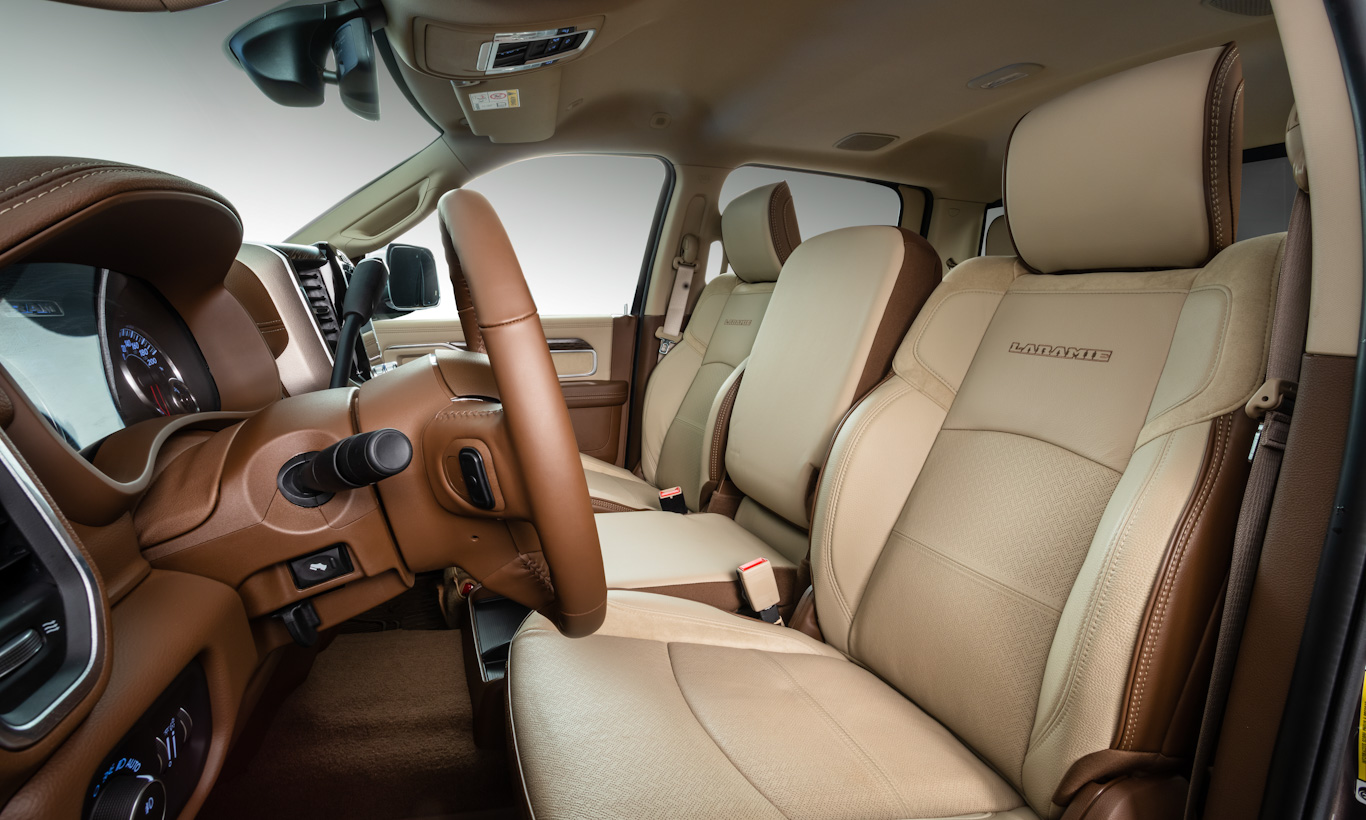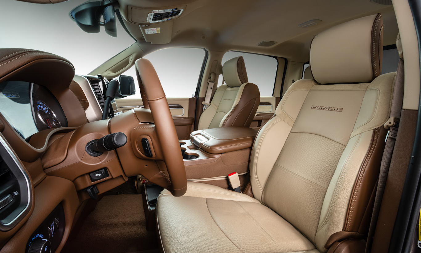 Além disso, ela troca o console central dianteiro alto por um banco extra. Assim, a RAM 2500 Rodeo tem capacidade para levar até seis passageiros. O banco central dianteiro pode ser dobrado e, novamente, funcionar como um console central.