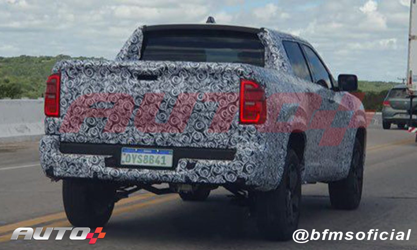 Na foto da tampa da caçamba, podemos visualizar o emblema da marca e um pequeno pedaço das lanternas em LED. Aparentemente o design bate com o antecipado pelo flagra do modelo, obtido pelo BF///MS em parceria com o Auto+. Porém, por conta do ângulo da foto, elas parecem ser mais longas. Nos resta esperar mais detalhes.
