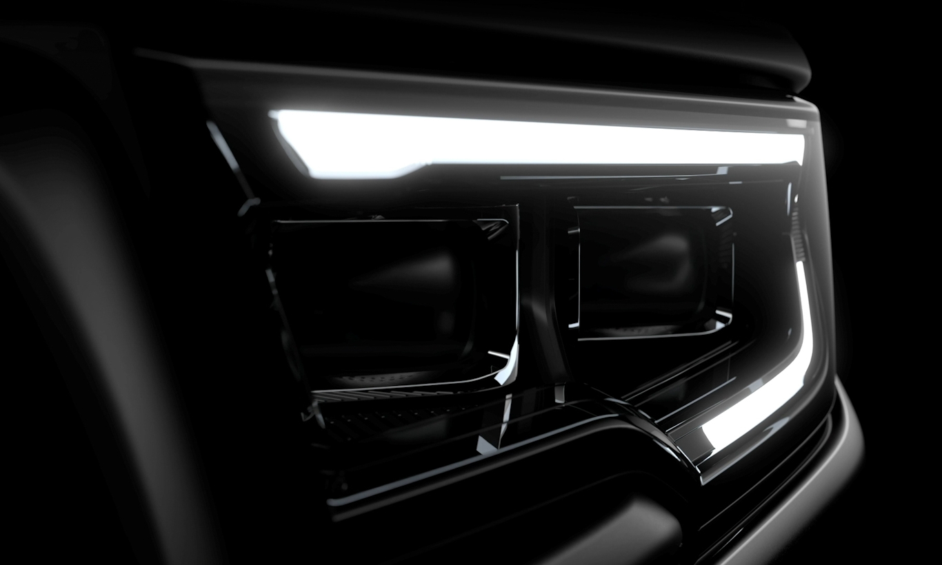 Por último há a foto dos faróis, que trazem um desenho bem diferente do visto nas irmãs de marca. Apesar de parecerem grandes na foto oficial, ele deve ser bem mais afilado em comparação com os outros modelos já conhecidos. Certamente full LED, ele traz um DRL dividido em duas linhas, uma superior (maior) e outra inferior (menor).