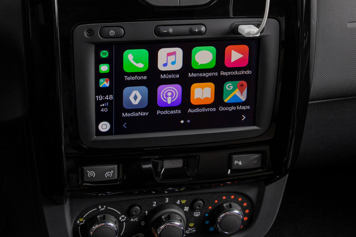 O SUV anda conta com a central multimídia Media Evolution, que possui 7 polegadas e que passa a oferecer suporte a espelhamento via Android Auto e Apple CarPlay. Dá para usar também Spotify, Waze entre outros aplicativos.