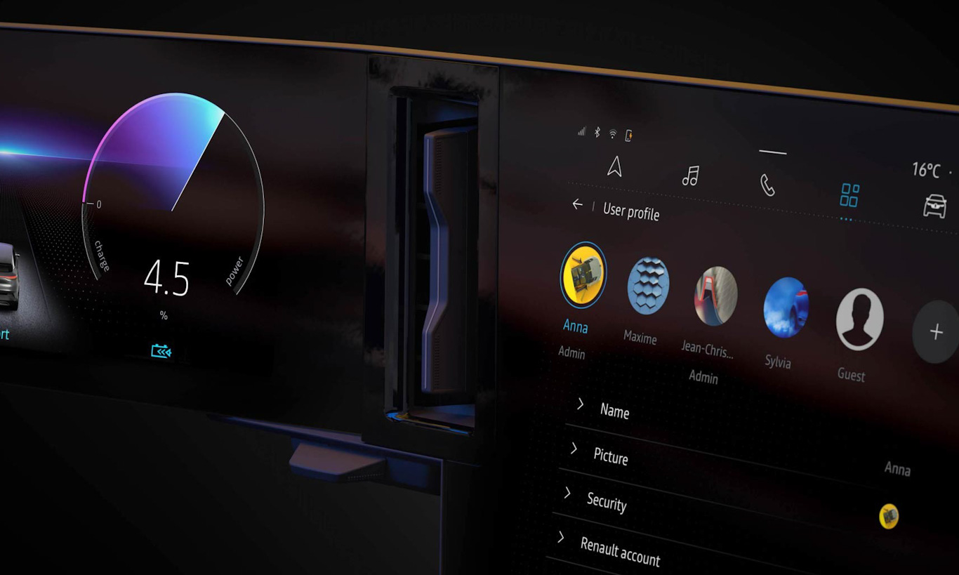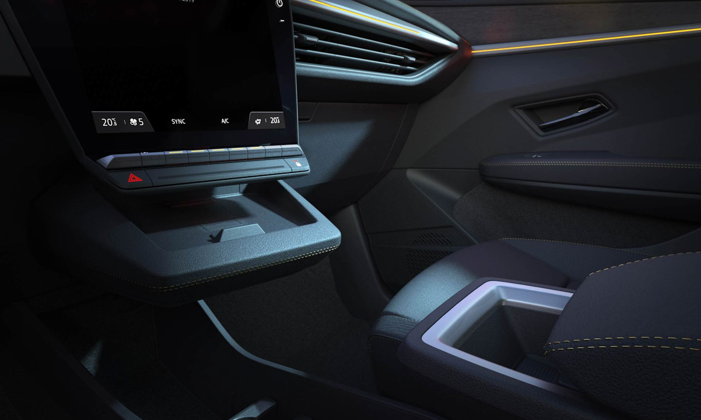 A Renault apensa revelou apenas pedaços da cabine do novo modelo. Ele terá console central flutuante com central multimídia vertical e comandos físicos para o ar-condicionado. Luzes cortesia circundam as portas e painel. Haverá painel de instrumentos totalmente digital com um nicho entre ele e a central multimídia – ainda não explica pela Renault.